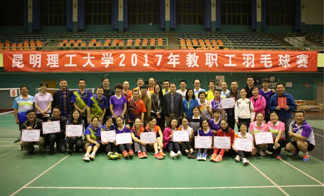近日,由昆明理工大学校工会举办的2017年教职工羽毛球赛在莲华校区落下帷幕。31个基层工会、113支队伍、近600余名教职工参加了比赛。经过4天160场激烈角逐,最终建筑工程学院1队、理学院1队、直属部门1队、城市学院1队分获甲组前四名,机电工程学院1队、冶金与能源工程学院3队、校机关1队、信息工程与自动化学院1队并列甲组第5名;城市学院2队、成人教育学院2队、建筑工程学院2队、化学工程学院2队分获乙组前四名,外国语言文化学院1队、校机关9队、冶金与能源工程学院3队、材料科学与工程学院6队并列乙组第5名。