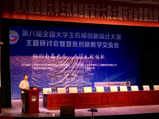 4月14日到16日,第八届全国大学生机械创新设计大赛主题研讨会暨慧鱼创新教学交流会在江西南昌举行,来自全国各地280多所高校的近700名专家学者参加本次交流会。昆明理工大学机电学院王立华教授应邀参加大会,并作题为“慧鱼创新实验教学经验交流”的主题报告。机电学院实验中心慧鱼创新教学团队主要成员参加本次大会。