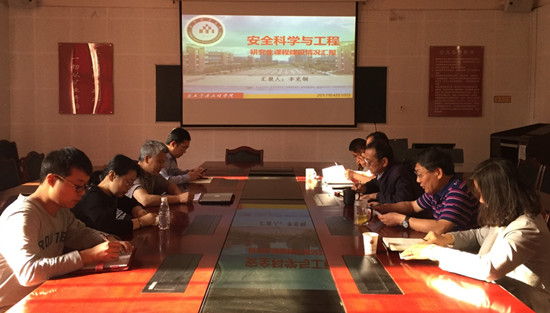 研究生院负责人对学校研究生课程建设的整体情况进行了介绍。国资学院负责人从学院概况、学科建设等方面向与会专家汇报了学院的总体情况,学院资开系负责人从安全科学与工程学科发展、师资及科研成果、学科研究生课程设置、学科研究生课程建设等六个方面进行了汇报。