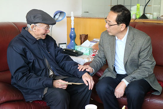 徐彬厅长一行来到了戴永年院士家里,为他送上鲜花和慰问品,仔细询问了他的工作生活情况,认真听取戴院士对云南教育科技发展的意见建议。徐厅长称赞戴院士长期以来敬业奉献、攻坚克难、勇攀科技高峰,悉心培养科技人才,为推进科技创新作出了表率,为弘扬科学精神树立了榜样,为云南的建设发展作出了突出贡献,是云南科技领域的功臣,是昆工的财富,并向他致以新春的祝福和节日的问候,祝愿戴院士身体健康,万事如意。