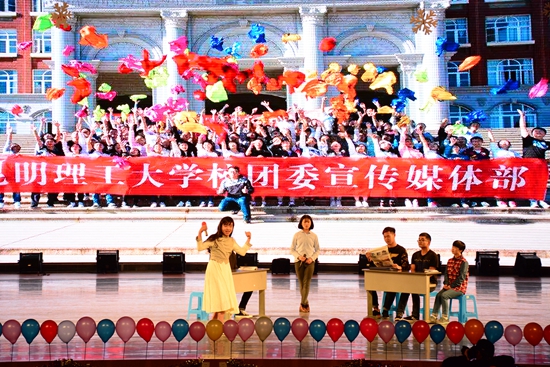 12月27日,由共青团昆明理工大学委员会主办,昆明理工大学艺术团承办的“翅展红土·戮力同心”昆明理工大学六大校级学生组织交流联谊晚会在红土会堂举行。校团委负责人及六大学生组织的学生干部近1000人到场观看晚会。