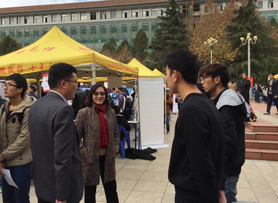 学校的毕业生人数今年突破了万人大关,本科生8032人,研究生2296人,就业总量压力增大,学校更加重视就业工作,采取多种措施促进毕业生就业创业。李莉副书记和牛治亮副校长一大早就来到莲华校区招聘会现场,指导毕业生求职就业,向用人单位推荐毕业生。