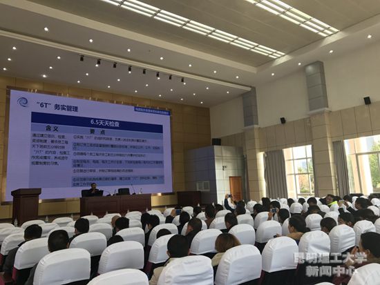 昆明理工大学后勤保障处负责人作了《阳光食堂标准化管理体系》专题讲座,他结合学校实际情况,详细介绍昆明理工大学“六T”食堂建设工作进展情况,并从阳光食堂体系标准化管理的内涵和构建阳光食堂体系标准化的路径等方面深入阐释 “六T”管理知识。