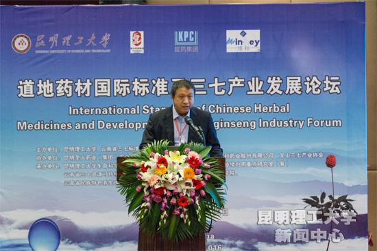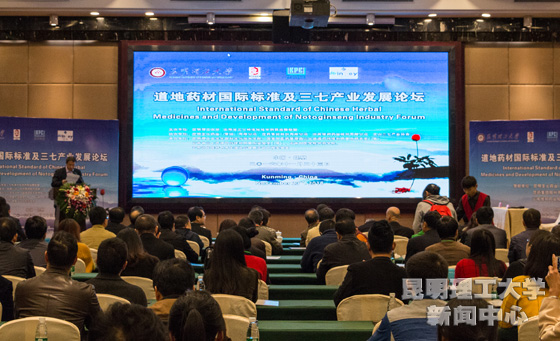 “道地药材国际标准及三七产业发展论坛”于11月23日至24日在昆明召开,论坛主题为“中药·国际化与标准化发展”。国际标准组织中医药技术委员会沈远东副秘书长,来自中国、美国、加拿大、日本、泰国等国的研究专家,昆明圣火药业、广州白云山和记黄埔中药公司、云南三七科技有限公司等企业负责人,共计200余人参加会议。
