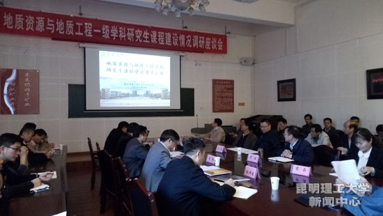 国土资源工程学院地科系主任陈爱兵从地质资源与地质工程学科简介、学科研究生课程设置、学科研究生课程情况三方面进行了汇报。国务院学科评议组对昆明理工大学地质资源与地质工程一级学科的特色和取得成绩进行充分肯定,从课程建设系统性、博士研究生培养、核心课程建设等方面提出了较好建议,对学校地质资源与地质工程一级学科及其研究生课程建设起到了重要促进作用。