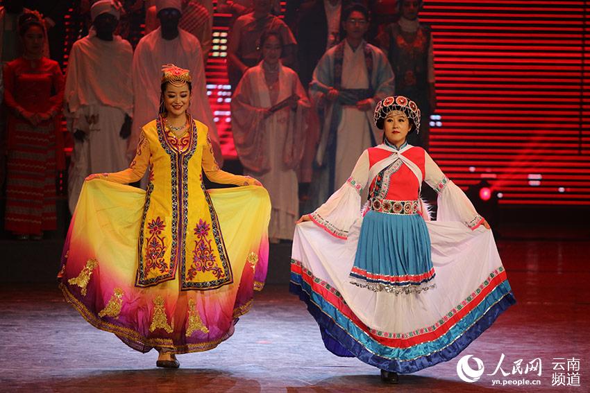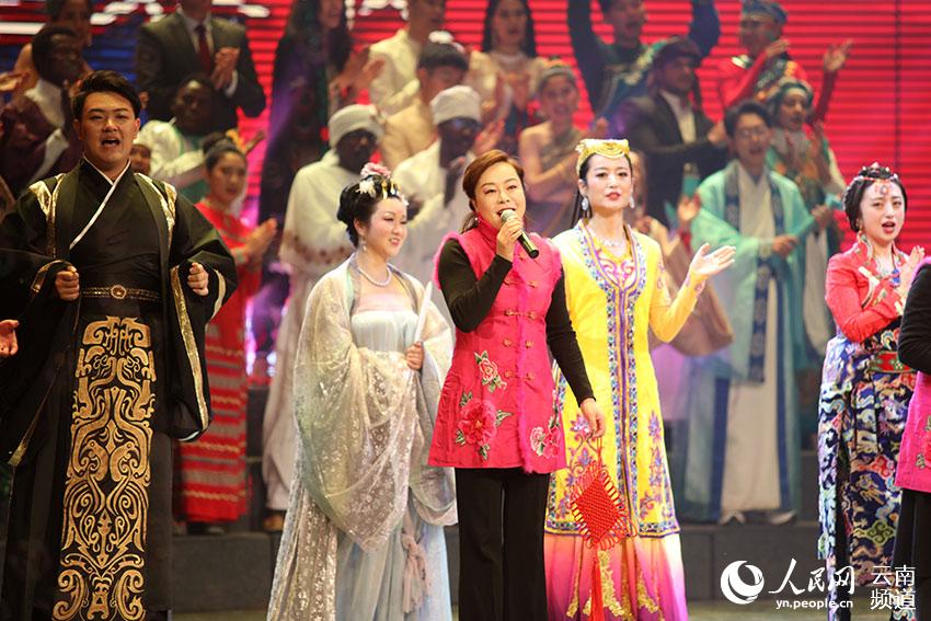 昆明理工大学国际学院的老师和留学生们同台联欢,共迎新年。(人民网 李发兴 摄)