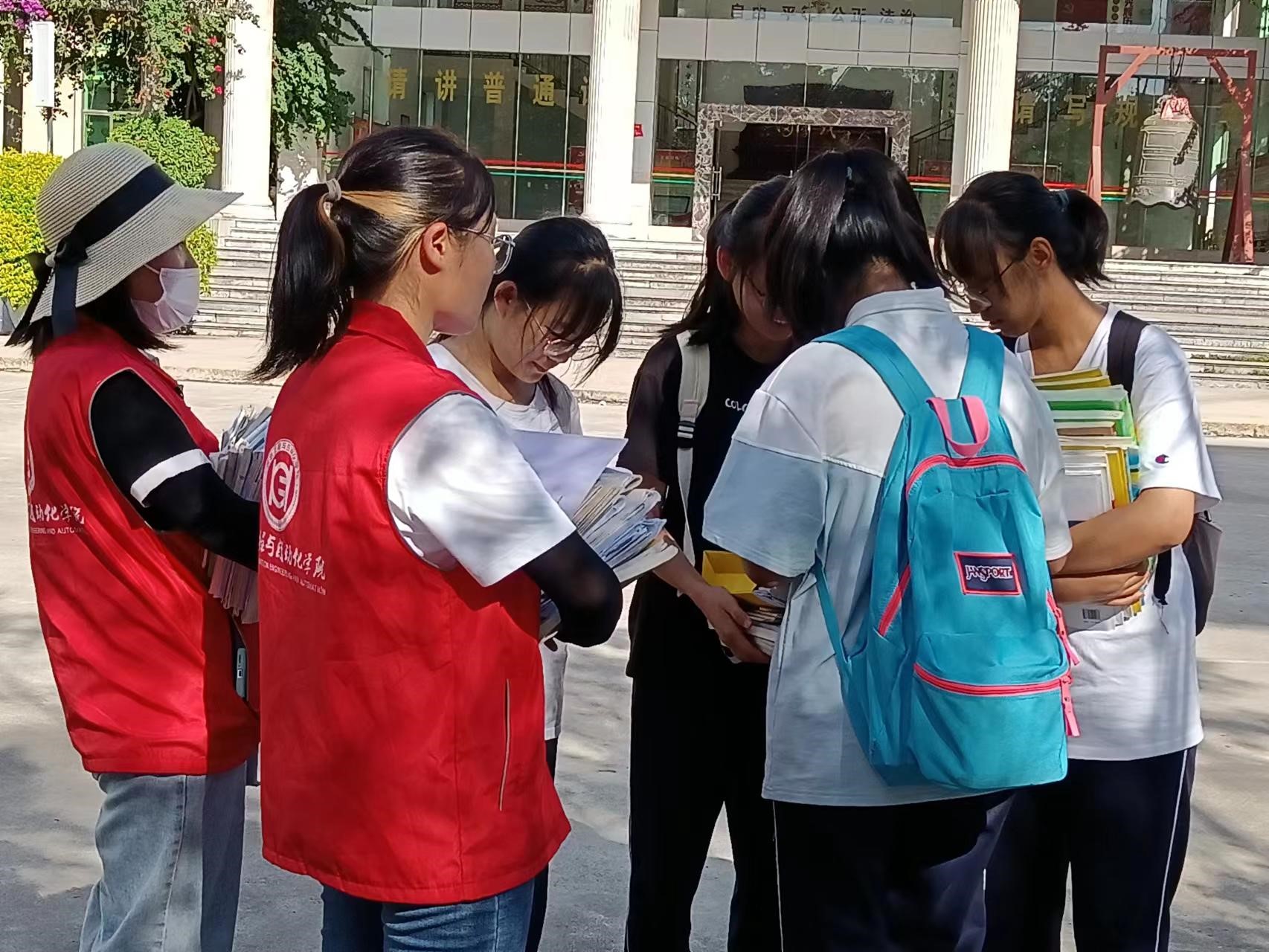 图为实践团成员在石屏县一中对高中生进行党史教育问卷调研。中国青年网通讯员 高艳琴 摄。
