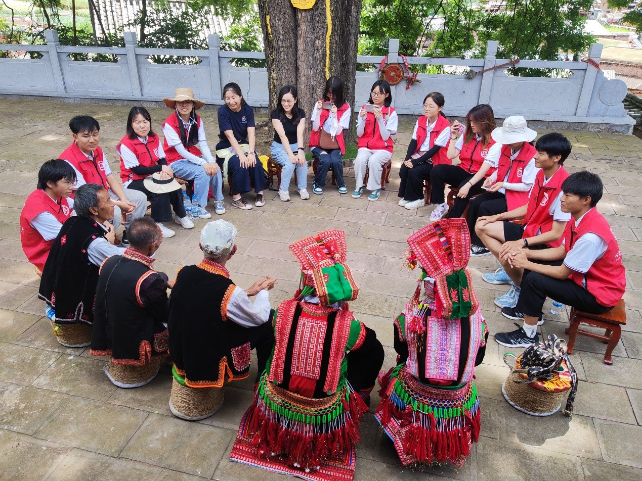 图为实践团在哨冲镇慕善村访谈花腰彝非物质文化传承人、老党员。中国青年网通讯员 杨展 供图。