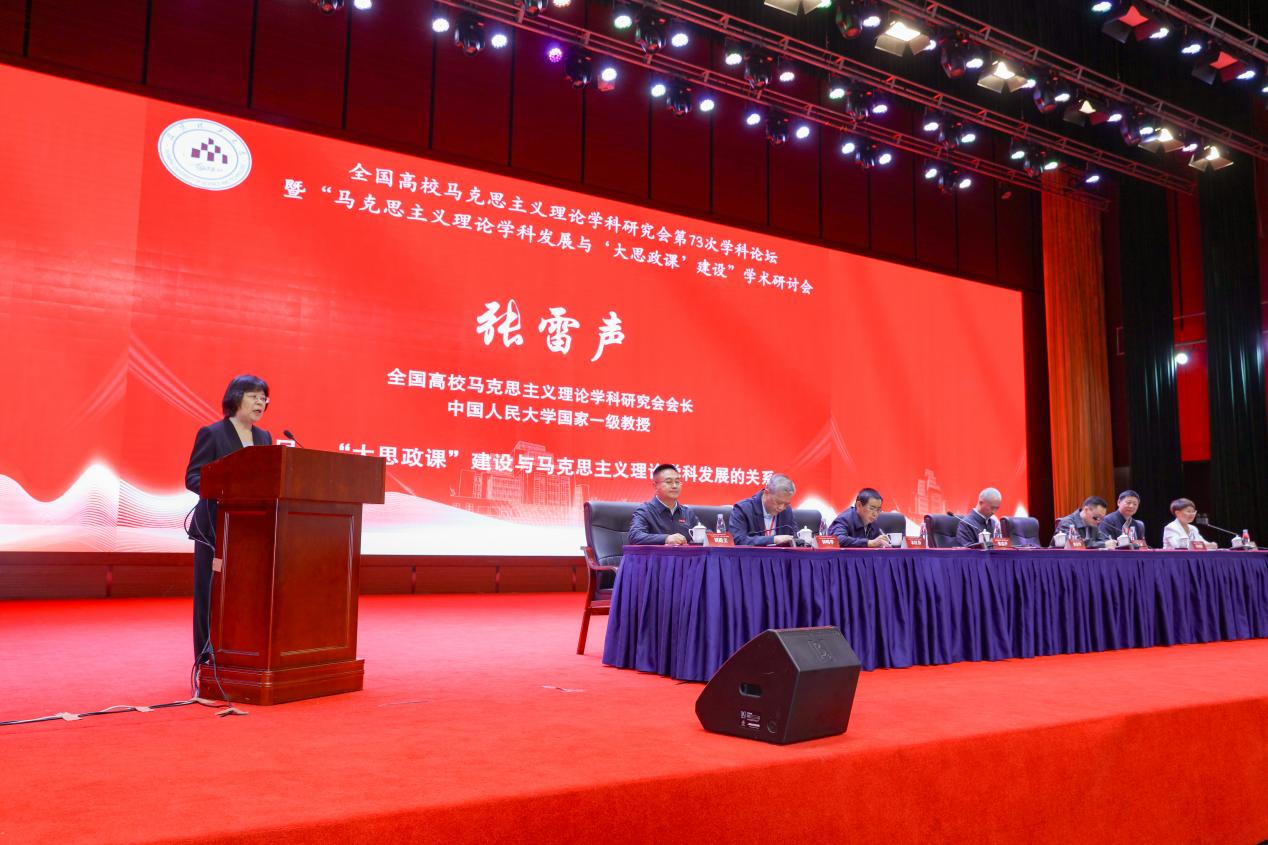 全国高校马克思主义理论学科研究会会长、中国人民大学国家一级教授张雷声致辞并作学术报告。她表示,“大思政课”建设与马克思主义理论学科发展之间有着密切的关系,要把“大思政课”建设与党的创新理论的实践转化相结合,拓展“大思政课”的实践育人路径,以“大思政课”建设促进马克思主义理论学科发展。