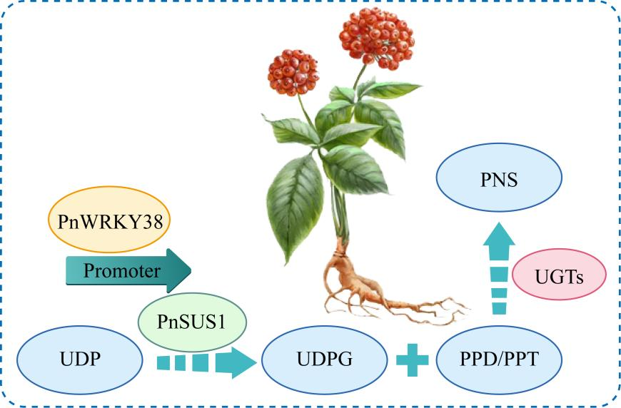 近年来,团队聚焦人参皂苷的生物合成研究,不断取得研究成果。2023年2月和2024年8月,团队分别在Industrial Crops and Products和Journal of Plant Physiology发表论文,首次提出“人参烟草”概念,发挥烟草生长周期短、生物量大、种植门槛低、遗传转化体系成熟且为非粮作物的优势,在烟草中成功合成稀有人参皂苷F1和Rh2,为烟草作为高价值天然产物的生物合成平台奠定基础;2025年3月,发表题为The plant platform for natural products synthesis: tobacco的综述文章,系统介绍了烟草作为合成生物学以及生物制造平台的优势和开发前景,阐述了利用烟草生产人参皂苷的可行性和有效性;2025年5月,发表题为Biosynthesis of ginsenoside compound K in Panax japonicus by metabolic regulation的论文,首次揭示人参属物种具有合成“非天然”人参皂苷CK的整套基因合成路径,并进一步采用合成生物学策略,在人参属物种中实现人参皂苷CK的合成,拓展了学术界对人参属药材活性成分生物合成的认识。相关研究同时获得国家发明专利授权。