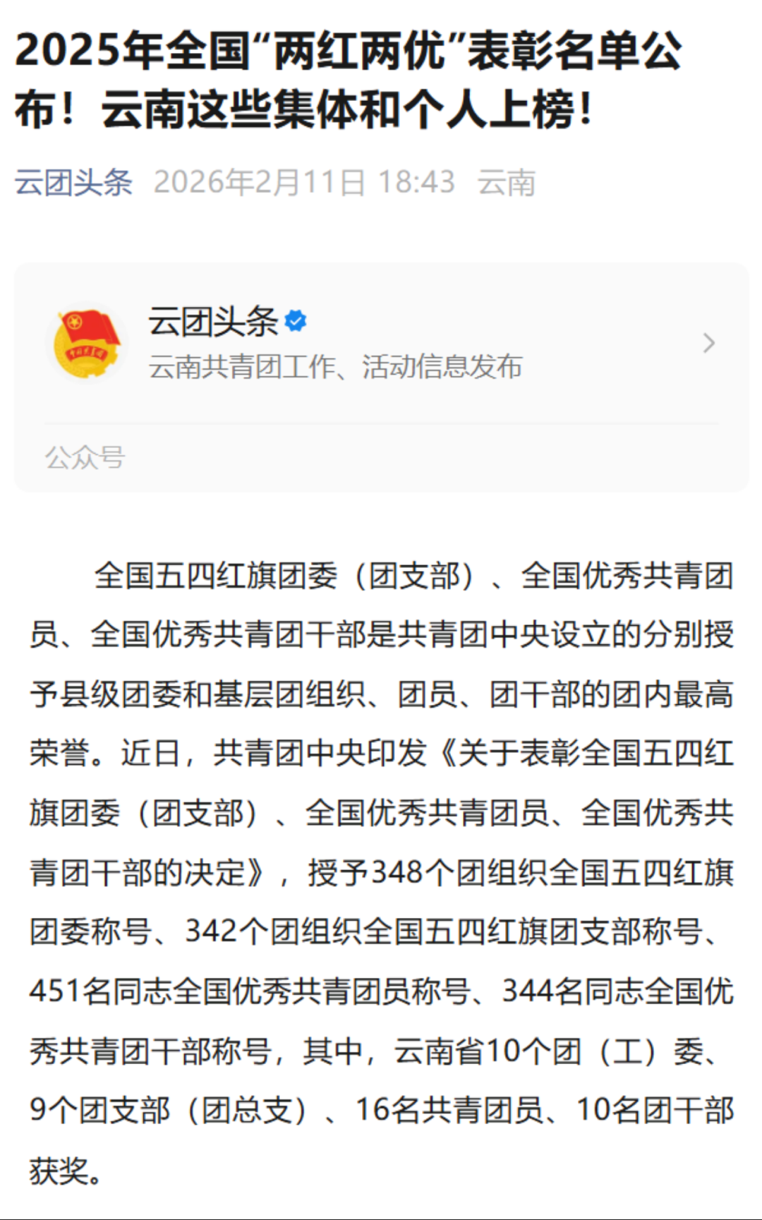 喜报|昆工学子获评2025年 “全国优秀共青团员”