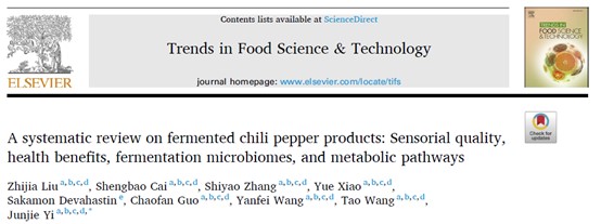 近日,云南省高原特色食品预制化重点实验室/昆明理工大学食品科学与工程学院,易俊洁教授领衔的果蔬加工与营养健康团队在Trends in Food Science & Technology (1区,Top)杂志上发表“A systematic review on fermented chili pepper products: Sensorial quality, health benefits, fermentation microbiomes, and metabolic pathways”文章。近五年,该团队围绕云南特色发酵蔬菜发表高水平研究论文18篇,其中入选ESI热点论文1篇、高被引论文4篇、学术精要高PSCI论文1篇,本篇综述论文的发表是团队对云南特色发酵辣椒方面开展系列工作的阶段性总结。